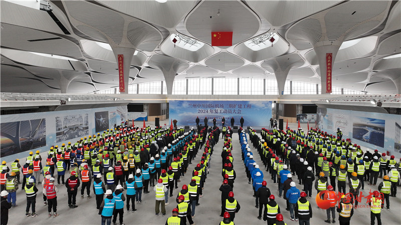 中國甘肅網2月26日訊(西北角·中國甘肅網記者 宋芳科 通訊員 王生朝)2月25日,甘肅省民航機場集團在蘭州中川國際機場三期擴建工程建設現場召開2024年復工動員大會,全體參建單位和廣大建設者聚焦沖刺7月底全面竣工、年底轉場投運目標任務,迅速掀起大干快上熱潮,全面推進復工復產,以起步就是沖刺、開局就是決戰的干勁全力跑出項目建設“加速度”。